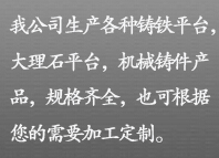 自从05年和我公司合作了感觉很好,我公司生产的划线平台,焊接平台,T型槽平台,铆焊平台,电机试验平台等系列产品,是用于工件、设备检测、划线、装配、焊接、组装、铆焊的平面基准量具。